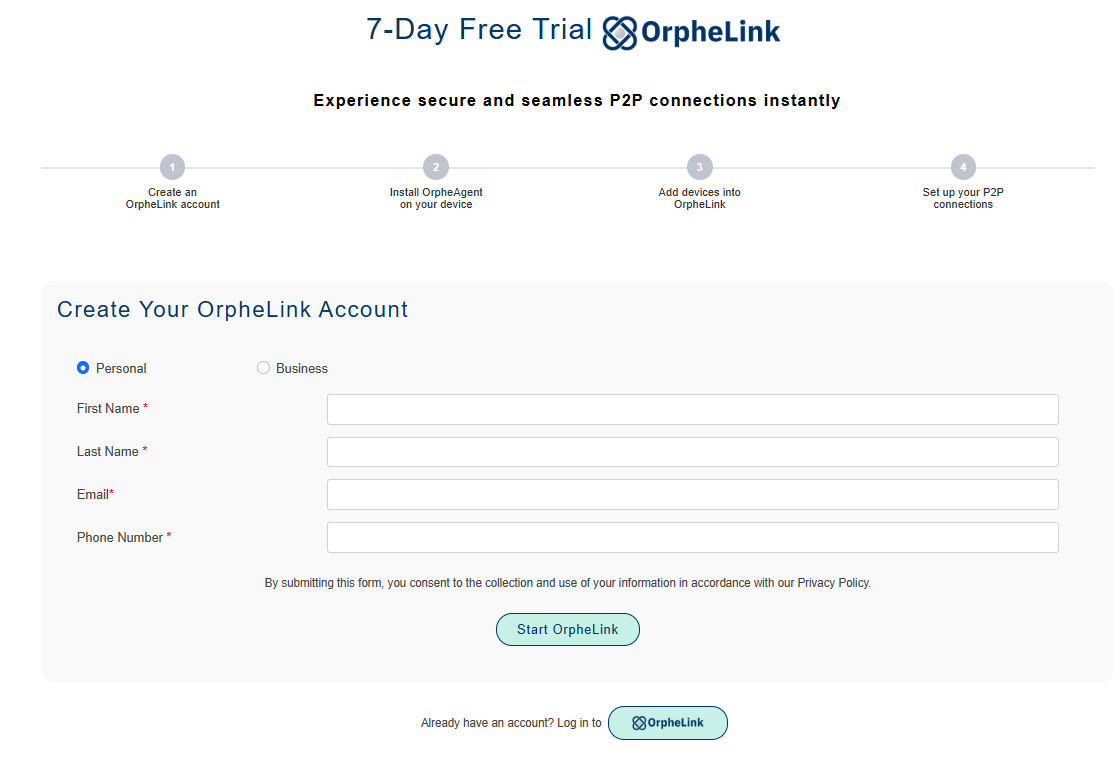 To get started with OrpheLink, please register a new account by clicking the link below: