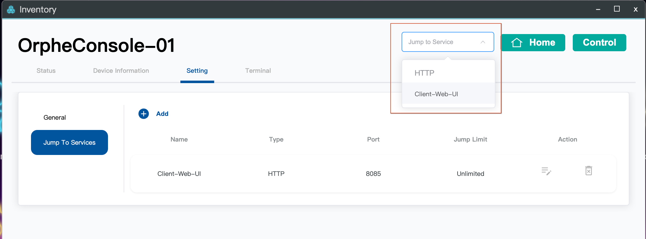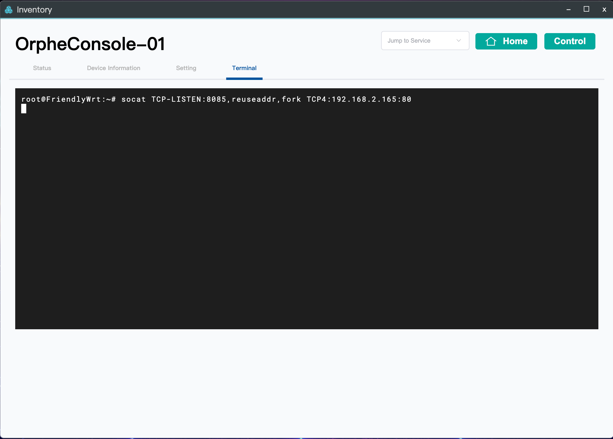 You can use OrpheLink’s Jump to Service feature to access services (like OpenWrt LuCI Web UI) running on a device connected to OrpheConsole.