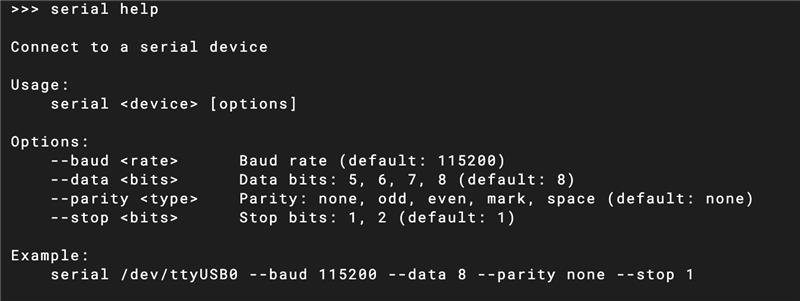 serial /dev/ttyUSB0 115200